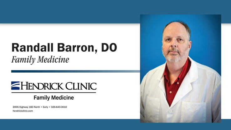 Randall Barron, DO, earned her medical degree from the University of North Texas Health Science Center/Texas College of Osteopathic Medicine in Fort Worth. He completed his residency in family medicine at Texas Tech University Health Sciences Center in Lubbock, Texas. His services include preventative care, acute medical concerns, chronic medical conditions and vaccines.
