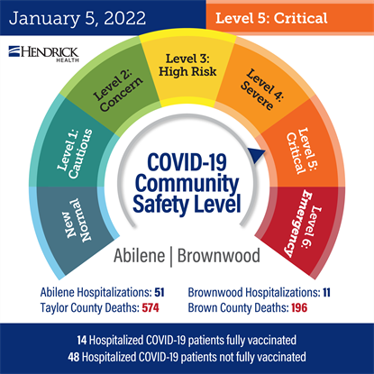 Today, Hendrick Health moved the COVID-19 Community Safety Dial to Level 5: Critical. Effective Thursday, January 6 Hendrick is reinstating its ...