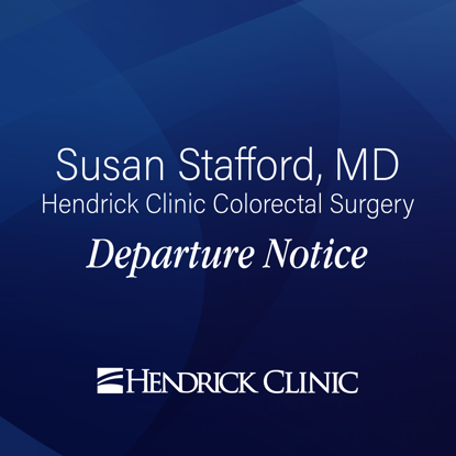 Dr. Susan Stafford will no longer be practicing with Hendrick Clinic Colorectal Surgery, effective February 17, 2023. If you would like to continue ...