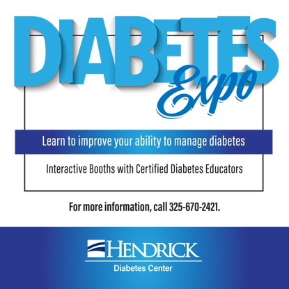 In addition, diabetes education is also offered at Hendrick Medical Plaza at 2371 Crockett Drive in Brownwood.